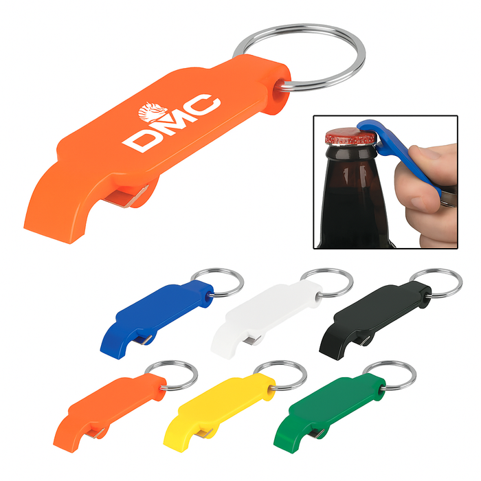 Allow your brand to be noticed the next time you pop open that bottle cap with this cool and funky keyholder bottle opener.