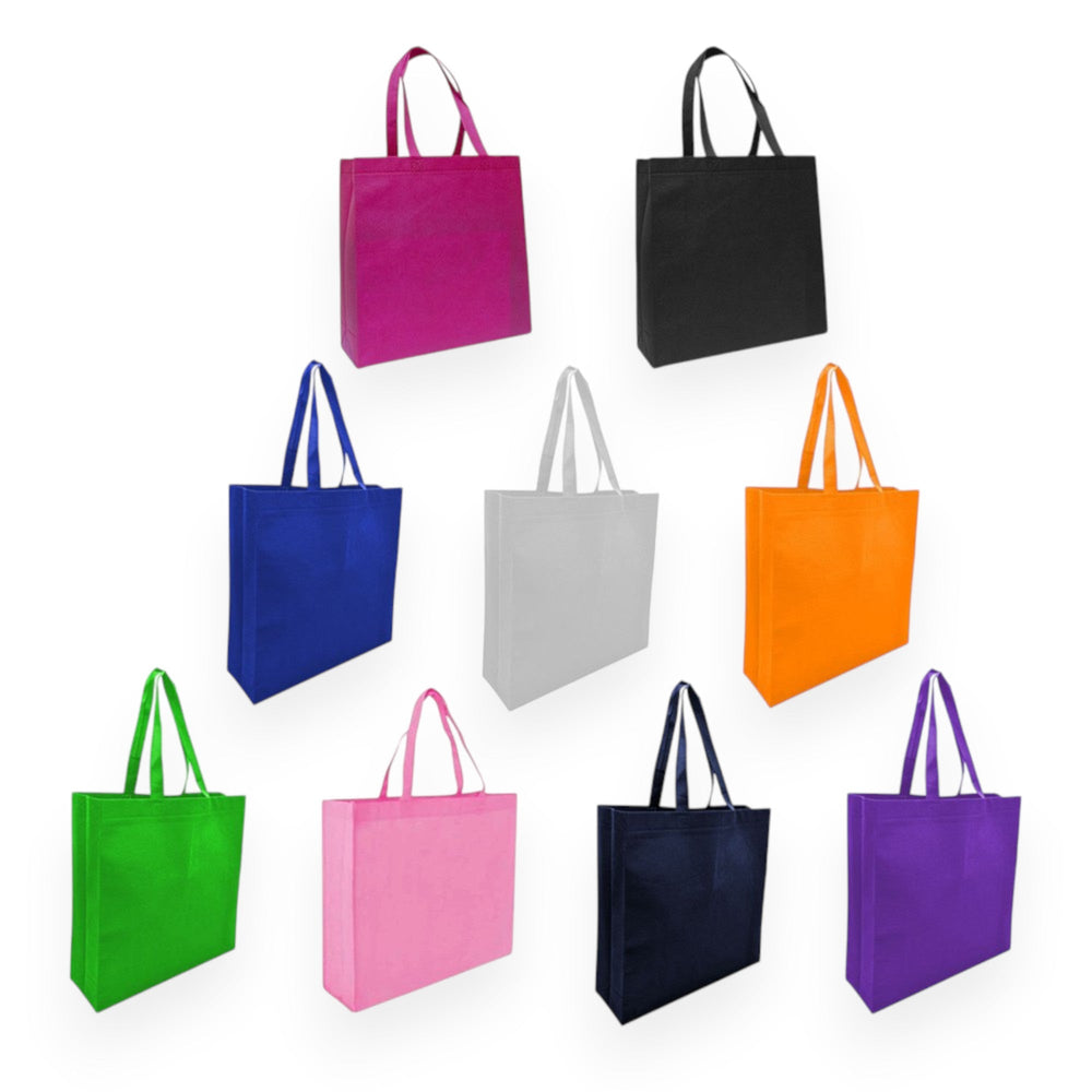 Made of recyclable non-woven material with an extra-large capacity and long handles. This is great for storing all the day's essentials for when you need them. It's perfect for handing out at the next tradeshow or conference. Extend the reach of your brand today!